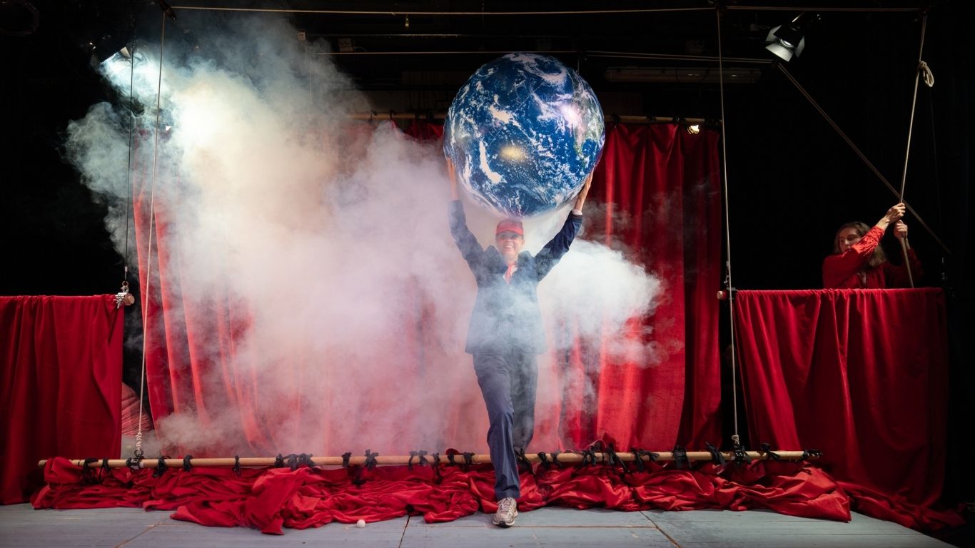 Waar gaat het dan over? Er is oorlog in Europa. Een klimaatcrisis. We worden steeds rechtser, rijker, ongezonder en egoïstischer. Kortom: we gaan er allemaal aan. Maar hoe? Dat is de vraag! De Theatertroep omarmt het naderende einde en probeert duidelijk te maken dat er niks is om je zorgen over te maken, omdat het toch al te laat is om er iets aan te doen. Dan maar lachend over de richel het ravijn in stappen!